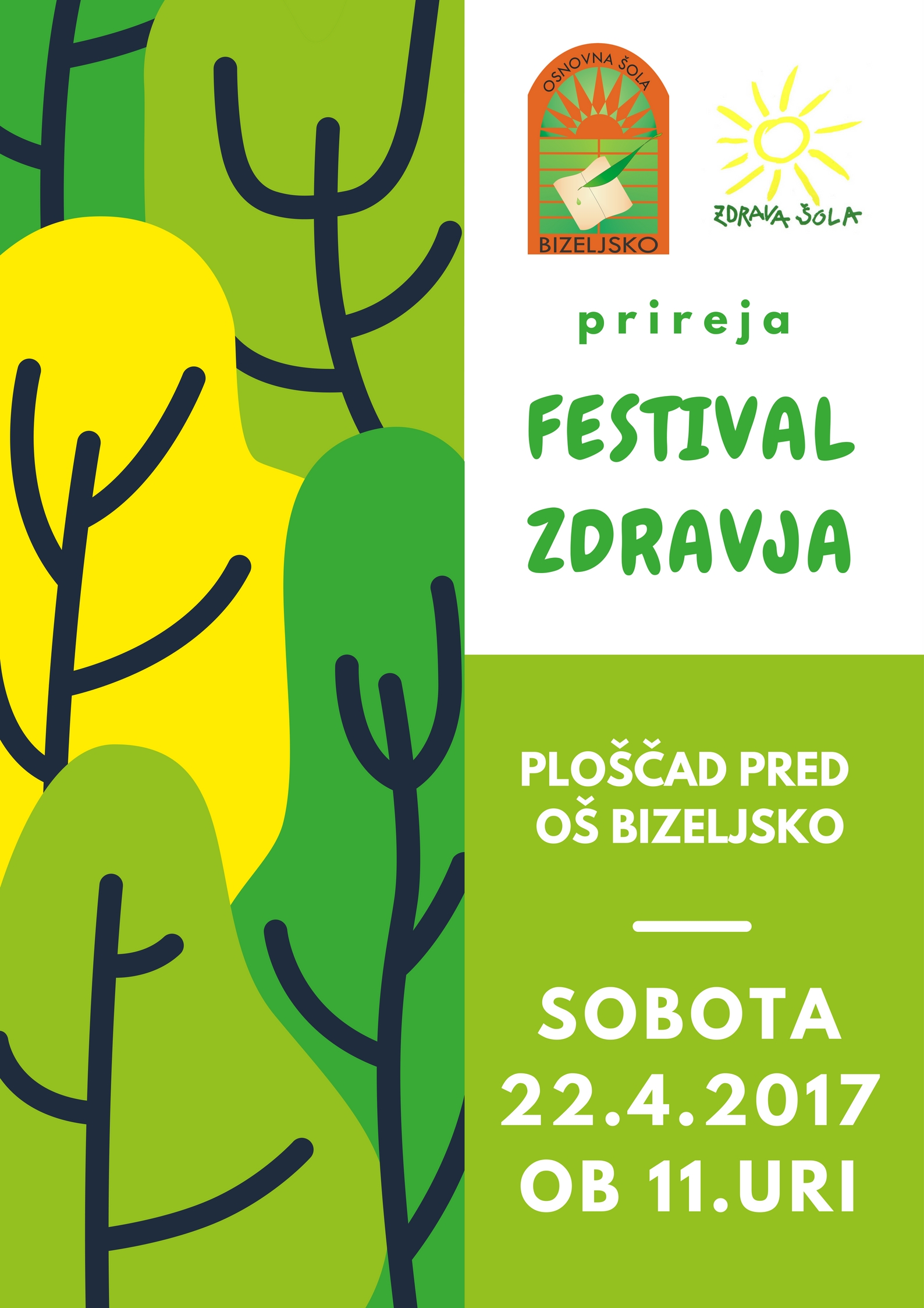 Osnovna šola Bizeljsko v soboto, 22. 4. 2017 s pričetkom ob 11.00 uri, prireja Festival zdravja na ploščadi pred Osnovno šolo na Bizeljskem.