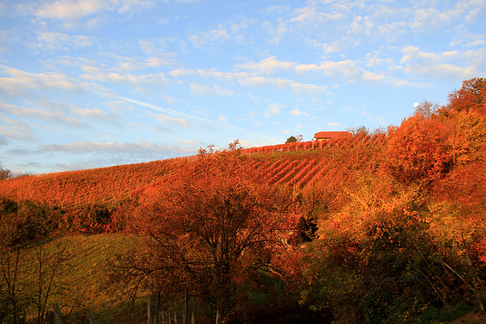 Listje se je obarvalo v številne odtenke rumene, oranžne, rjave do temno rdeče barve, kar daje vinorodni pokrajini poseben čar. V čudovitih razgledih lahko uživajo pohodniki, ki se odpravijo na sprehode med vinogradi.