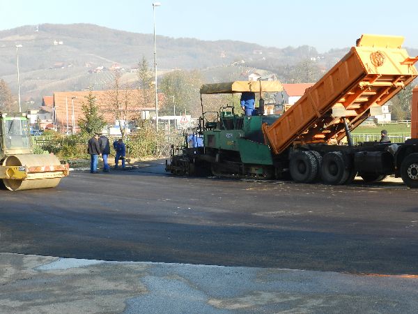 Plato je leta ostajal le zasilno urejen, saj je zadruga do letos dokazovala lastništvo zemljišča, ki ji ga je osporaval Sklad kmetijskih zemljišč. Zato so le navažali gramoz na makadam in desetletje tako reševali kaotično stanje ob slabem vremenu. Predsednik krajevne skupnosti Bizeljsko Franc Kelher je pojasnil, da so plato lahko uredili šele potem, ko je Občina Brežice končno uspela skleniti dogovor in je letos odkupila zemljišče, v velikosti 659 m2. Zanj je Vinogradniško vinarski zadrugi Bizeljsko odštela 19.770 evrov. Krajevna skupnost je prispevala 13.500 evrov za dokončno ureditev ploščadi, to je tampona, postavitev robnikov in asfaltiranje. Izvajalec del je bilo domače podjetje David Babič s.p., podizvajalec pri delih asfaltiranja pa CGP Novo mesto.