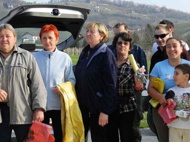 barvne vreče in rokavice ter navodila o akciji. Že zjutraj se je tam zbralo okoli 40 ljudi, predstavnikov posameznih društev in družin ter vaških skupnosti, ki so prevzeto nato razdelili na kraju, kjer so pobirali smeti.