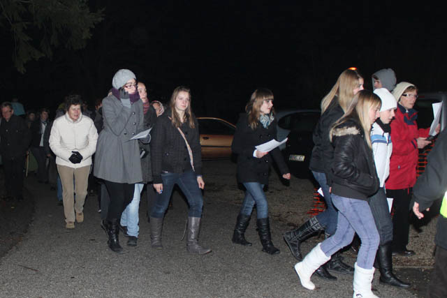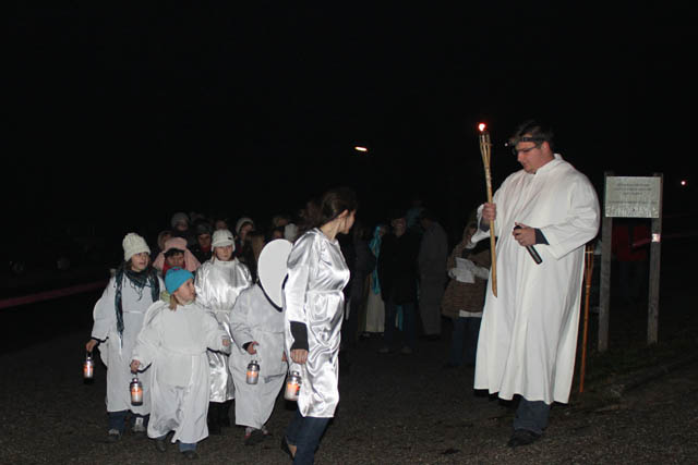 iskanje prenočišča in dolgo pot Jožefa in Marije iz centra naselja, kot vsako leto, temveč so pripravili krajšo pot le iz štalice, obdane s pastirji in živalmi, ob farni cerkvi.