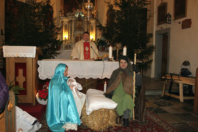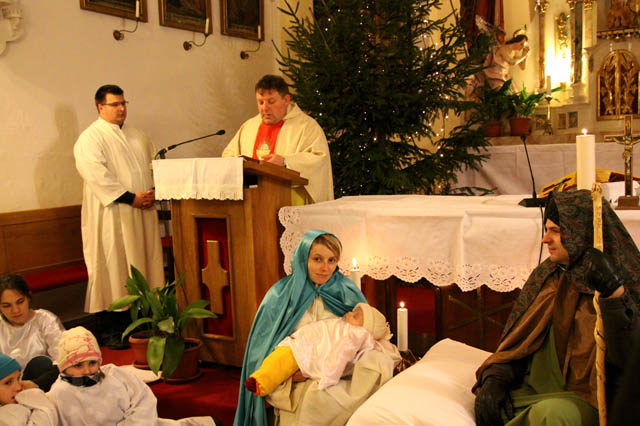 Sveto družino z živim detecem je tokrat že drugič uprizorila družina Šekoranja-Špiler iz Vidove poti, v slamnati štalici pa so se novorojencu poklonili tudi trije kralji, angel je odnesel novo rojeno dete v cerkev sv. Lovrenca, kjer je sveta družina z malimi angeli ostala pred oltarjem na polnočnici, ki jo je daroval domači župnik Vlado Leskovar. Mašno daritev je polepšal cerkveni pevski zbor ter mlade glasbenice na citrah, osnovnošolke Blanka Stermecki in sestri Agnič. Za vse obiskovalce so po maši pripravili kuhano vino in topli čaj, župnik pa jih je ob božičnem voščilu pozval, da se zadržijo na klepetu in si ogledajo ognjemet.