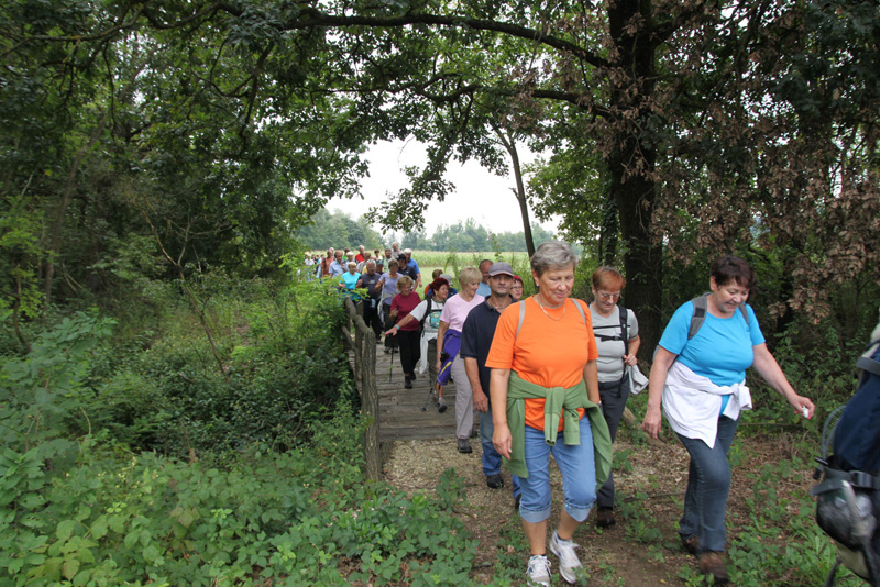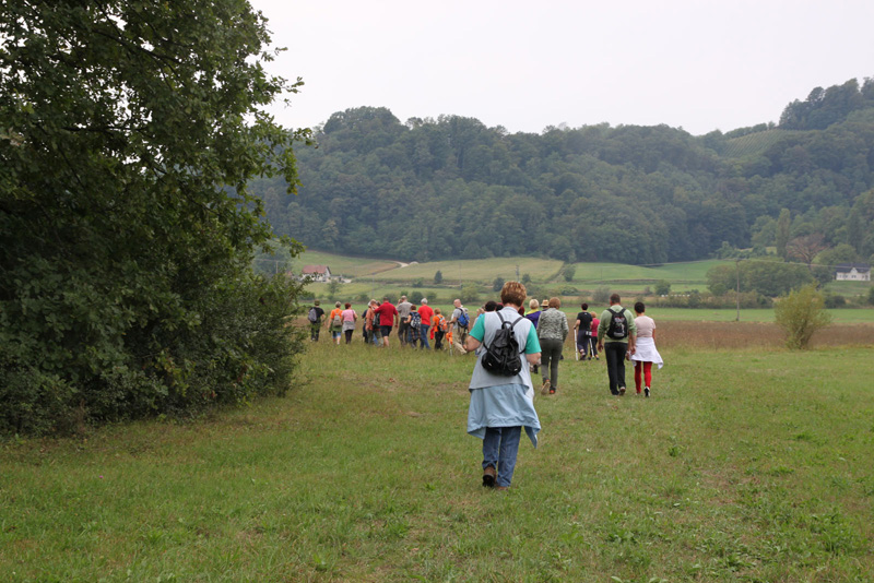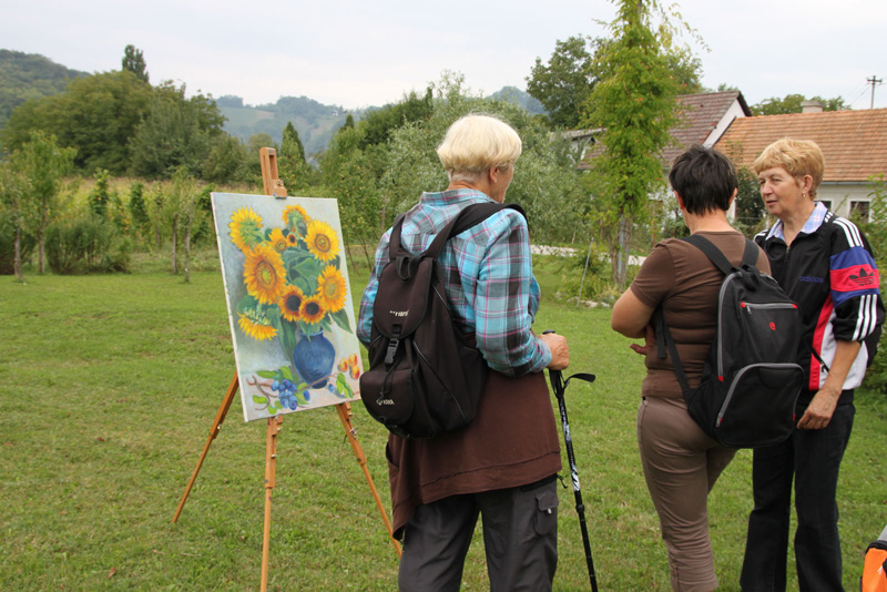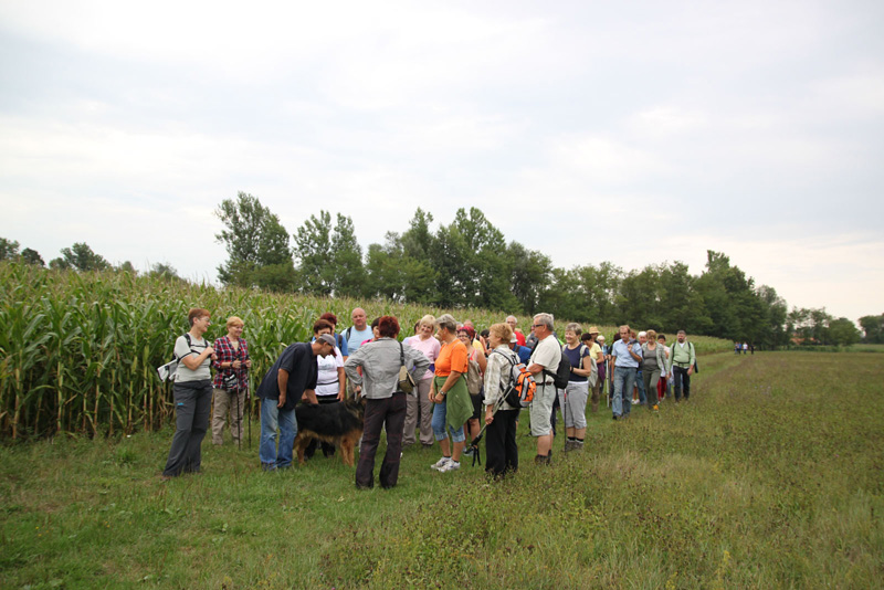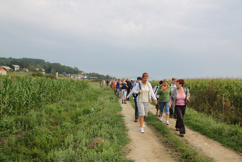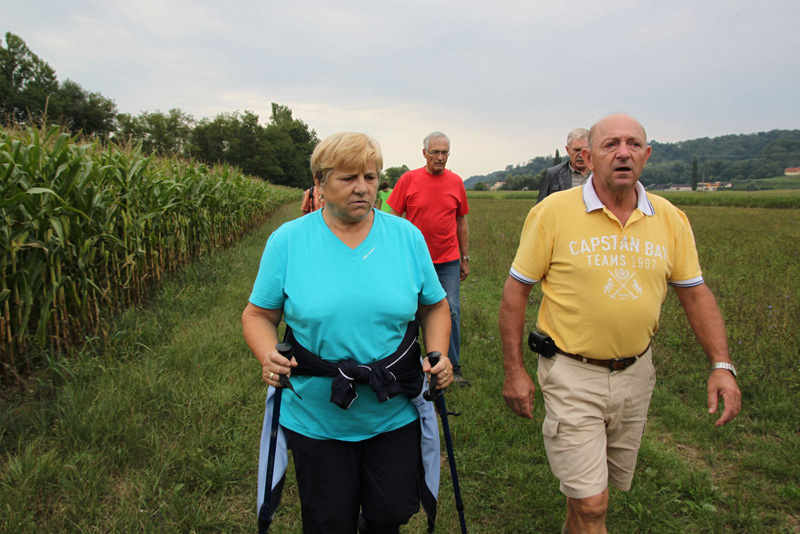 Pot nas je vodila med travniki, njivami in po pokošenih poteh ob reki Sotli do Gregovc, kjer smo se ustavili in okrepčali najprej pri Nuječevih, od tam pa do Jerneje Pregelj , kjer smo si po kratki pogostitvi ogledali tudi razstavo slik na prostem avtorice Helene Lipej. Od tod smo pot nadaljevali do Nove vasi, kjer je bil krajši počitek s pogostitvijo pod vaško lipo. Do novega rekreacijskega prostora vaščanov Gregovc smo se vračali po isti poti, kjer smo druženje končali ob klepetu in okusni hrani in pijači.