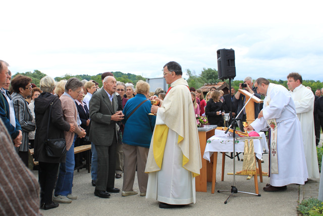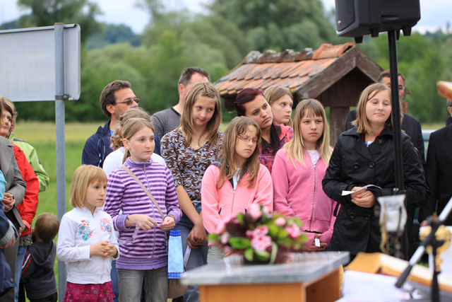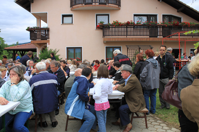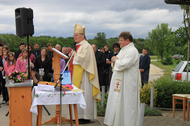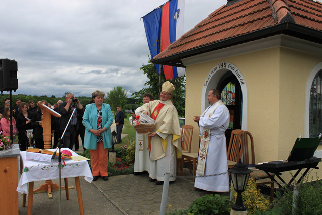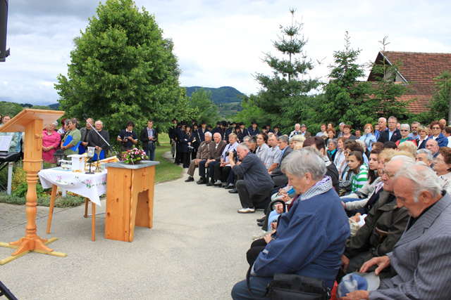 Povezovala ga je vaščanka Andreja Pustak Švigir. Obred so, kot po navadi, z ubranim petjem obogatili cerkveni pevci ter godbeniki, otroci pa so škofu izrekli prošnje, da gospod Vlado ostane župnik na Bizeljskem. Zbrana množica jih je pospremila z aplavzom in s tem pokazala, da so to želje vseh. Jože Geršak je vse prisotne povabil na svoje dvorišče. Ob pripravljeni hrani in pijači so za dobro voljo poskrbeli Trebeški drotarji.