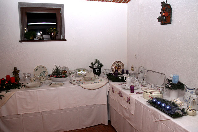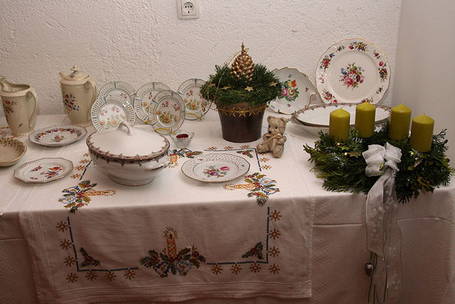 Gre za zelo star in dragocen porcelan, ki ga Heberletova, ki živi v tujini, zbira okoli 30 let. Bogate vezenine so prispevale tudi okoliške žene, zraven pa sta avtorici razstave dodali še adventne venčke in aranžmaje, v nekaterih nista mogli niti mimo lovske strasti gospodarja Karla Blažinčiča.