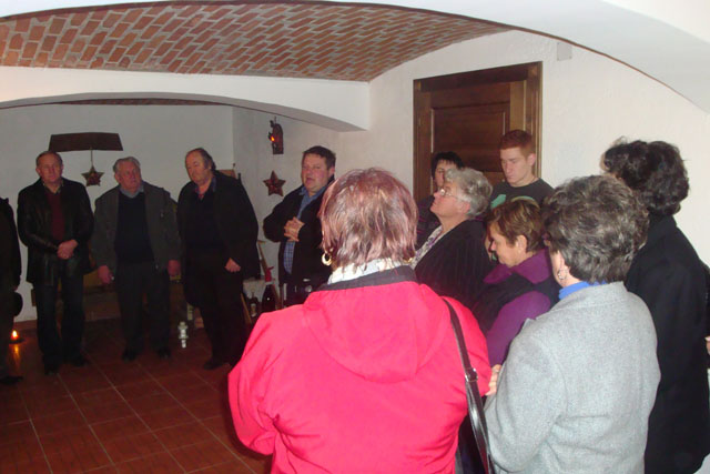Otvoritev razstave Pri Merkeževih so polepšali domači ljudski pevci, ob župniku Vladu Leskovarju pa je kaplan Silvester Molan spomnil na pomen božiča, njegovo simboliko in spregovoril o tem času, ko človek ne bi smel bil sam.
