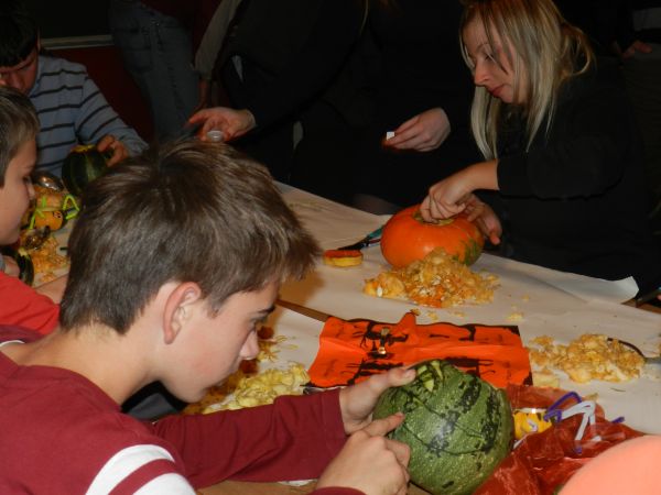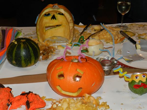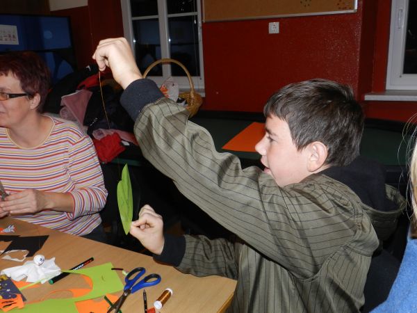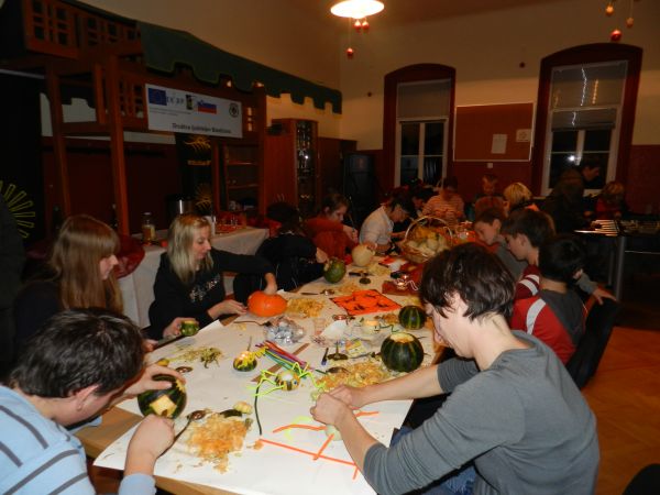 Šlo je za prvo skupno delavnico dveh društev mladih iz sosednjih občin, ki pa sta le nekaj kilometrov narazen. Zbralo se je okoli 30 udeležencev, od tega tretjina iz Bistrice ob Sotli, in sicer šolarjev in mamic z najmlajšimi, tudi vrtičkarji. Pod mentorstvom Mirele Kunst in Suzane Domitrovič so izdelovali okraske iz buč, pajkce in podobne aranžmaje. Polovica udeležencev je pod mentorstvom Katarine Zagmajster in Tee Berkovič izdelovala priložnostne izdelke iz papirja, kot so bučke, strahci, netopirji … Nastale so prav posrečene umetnine, ki so jih po dveurnem druženju otroci z veseljem odnesli domov. Najmlajši so se veselili tudi poslikav obraza.