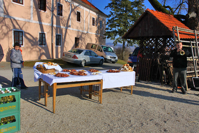 Blagoslov je opravil domači župnik, gospod Vlado Leskovar, prve trte pa so obrezali mladi domačini, dijaki kmetijske šole. Obljubili so bogat in kakovosten pridelek. Ob delu jih je spremljal harmonikar in MPZ Kapele. Druženje se je nadaljevalo ob kuhanem vinu in klobasah ter torti, ki jih v ta namen prinesejo vinogradniki. Dogodek so spremljali tudi domači muzikanti, ki so zaigrali nekaj poskočnih.