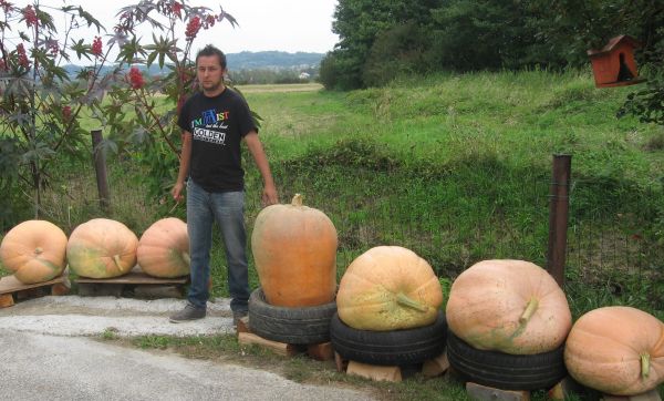 Tudi letos se veseli obilnega pridelka, zid v garaži krasi spletena čebula, okolico domačije pa buče. Okolico hiše je okrasil s sedmimi bučami velikankami, sorte atlantic, ki bi bile še večje, je dejal, če bi bilo vreme skozi leto bolj primerno. Velikanke tehtajo okoli 90 kg, star lesen kozolec, ki je vzdržal že nekaj generacij, pa je okrasil še z okoli 30 manjšimi bučami in s preko 20 t.i. cugi.