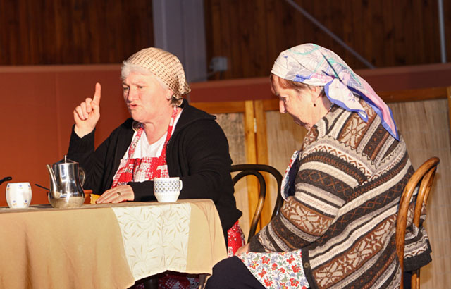Dramska skupina, v kateri igra tudi večina članov družine avtorice Ivane Zupančič, je navdušenim gledalcem izvirno predstavila zgodbo pišečkega sina, ki na kmetijo svojih staršev pripelje svojo družino iz mesta. Poleg velike spremembe življenjskega okolja, ki pesti snaho in eno od hčera ob prihodu na deželo se situacija še bolj zaplete ob ideji, da naj starša takoj prepišeta kmetijo na mlade. Ob tem se pojavijo čustva in strah za preživetje, ki jih poskuša tašča rešiti na svoj način. Na koncu se situacija srečno razplete s presenečenjem in praznovanjem petdesetletnice poroke.