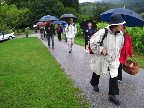Po maši so se pohodniki in obiskovalci zadržali na druženju s pogostitvijo in kulturnim programom Moškega pevskega zbora Bizeljsko in Ženskega zbora Orlica Pišece, ki ju oba vodi Vinko Žerjav. Med potjo so pohodnike večkrat pogostili, pri Černelčevih skupaj z družino Šekoranja – Špiler ter pri Zagmajstrovih, kjer so z njimi zapeli ljudski pevci, na domačiji članice društva Brigite Heberle na poti pa je Zavod Ekoalt Vindol pripravil razstavo vrtne keramike, ki bo na ogled še cel mesec, keramiko pa so na stojnici pri kaplaniji tudi prodajali, je pojasnila predsednica društva Vesna Kunej.