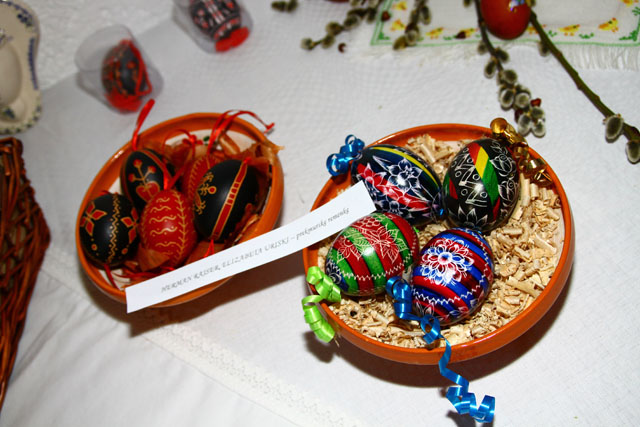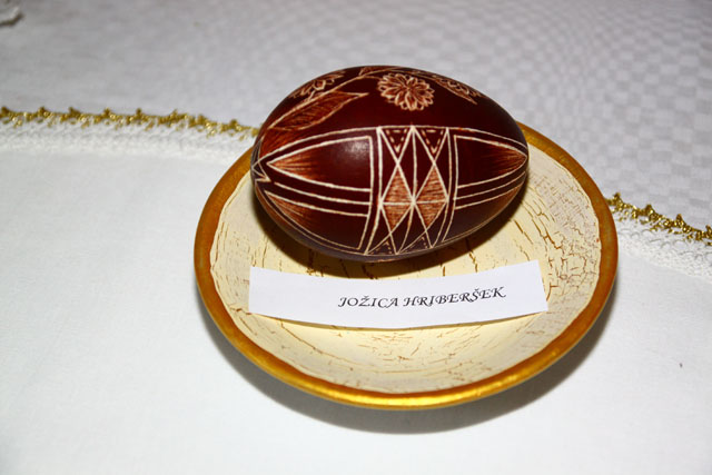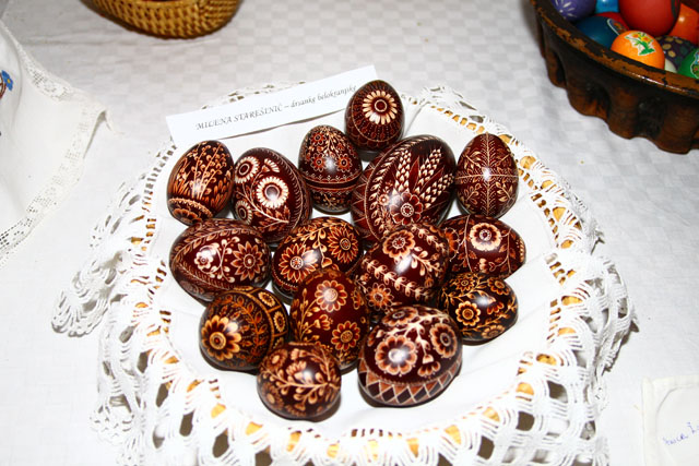 Razstavljajo Brigita Heberle Martini (Bizeljsko)- pirhi, ‘Ivančice’: Ivana Lekše in Jožica Omerzel – obe vezeni prti, Tončka Zelič – pirhi, Anica Žokalj (Globoko) – pirhi, prti, košarica z zajčki, Danica Kocjan (Bizeljsko) – vezeni prt, drsanke, Olga Blažinčič – prt, Urška Petkovšek (Pišece) – kvačkani prti, pirhi, pirhi v tehniki quiling, Jožica Hriberšek (Bizeljsko) – kvačkani pirhi, prti, Ivanka Ivačič (Globoko) – pirhi, kvačkan prt, drsanke, Branka Hriberšek (Mlin Hriberšek Globoko) – košarica iz testa, Herman Rajser in Elizabeta Urisk – prekmurske remenke, Milena Starešinič (Metlika) – drsanke belokranjske, prti, Jakobina Pahor (Metlika) – drsanke belokranjske, Martina Vidic (Metlika) – belokranjske pisanice, Sanja Zebolc (Klanjec, Hrvaška) – zagorske pisanice, Katica Milčić (Klanjec) – pirhi, Zdenka Suhadolnik (Cerknica) – pirhi in prvi domačin, ki razstavlja ob boku žensk, Vinko Strmecki (Brežice) – leseni prhi.