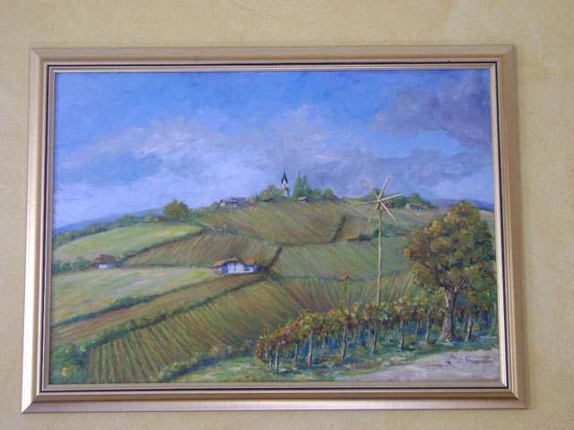 Tako nastajajo slike grajske kleti, lokvanjev iz ribnika pri gradu Pišece, vinogradov pod sv. Vidom. Veseli smo, da lahko iz leta v leto gostimo tako prijetne ljudi, ki so kljub častitljivi starosti še vedno polni elana in želje po raziskovanju nekaj novega, drugačnega. Vedno znova nas spomnijo na bogastvo narave, ki nas obdaja. Ob tem nas navdaja ponos, saj smo slike z motivi Bizeljskega izobesili v Penzionu Merkež.