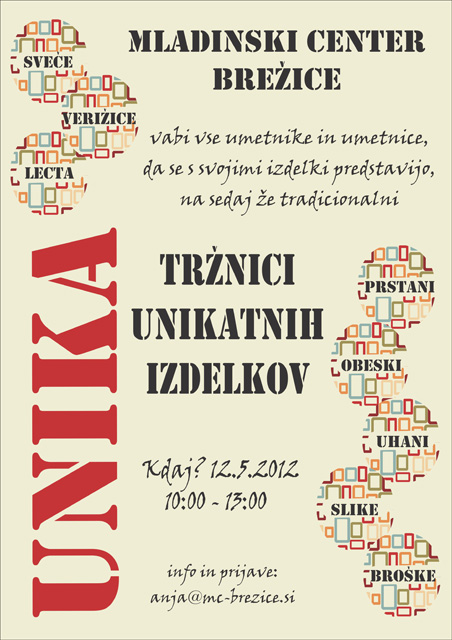 MC Brežice vabi vse imetnike in umetnice, da se s svojimi izdelki predstavijo na sedaj že tradicionalni TRŽNICI UNIKATNIH IZDELKOV!