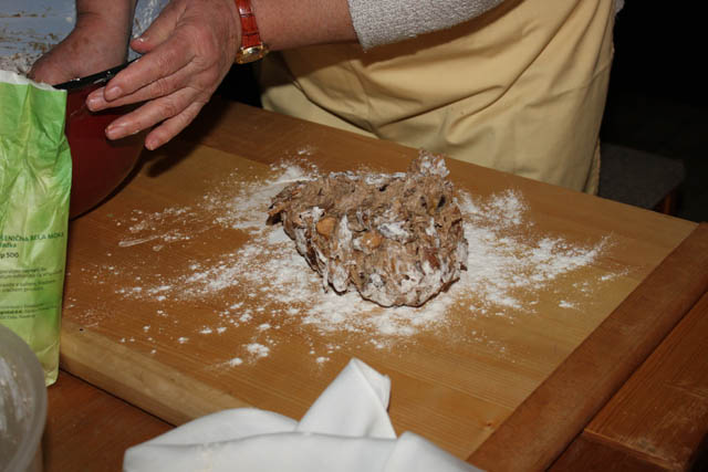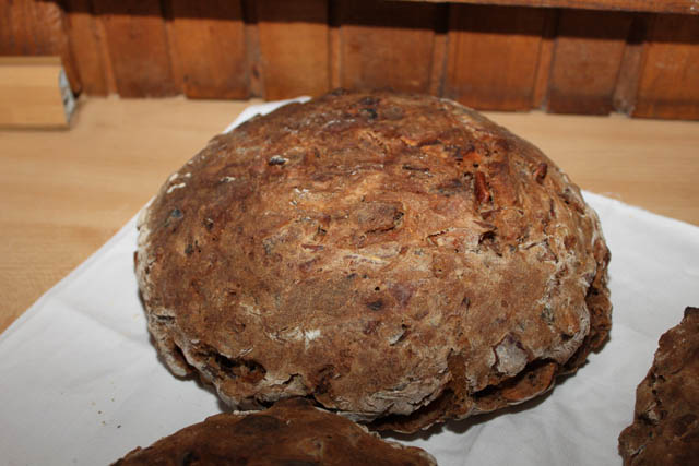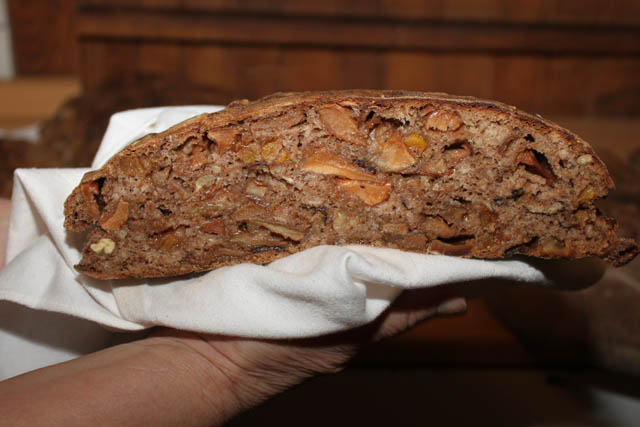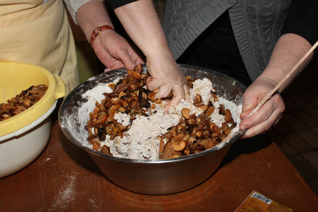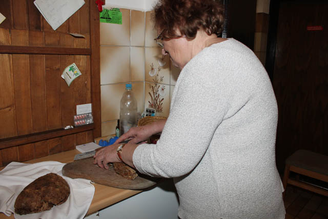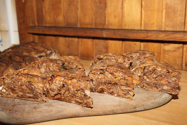 Gospa Mira Podgoršek pa nam je zamesila in spekla sadni kruh, za katerega je na Dobrotah slovenskih kmetij na Ptuju dobila zlato priznanje. Povedala je, da ga pripravlja po receptu svoje tašče, ki je uporabljala le sadje, ki je takrat raslo na naših kmetijah. Nič ni narobe, če dodamo suho sadje po svojem okusu, katerega je zdaj moč kupiti več vrst.